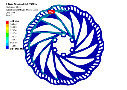 צוות ההנדסה של SwissStop ביצע סדרת בדיקות מעבדה על דיסקי בלמים לאופניים. לאחר מכן הם יצרו מודלים דיגיטליים של הדיסקים וסימולציות של אותן סביבות בדיקה באמצעות תוכנה מתקדמת. השוואת הנתונים אישרה שהסימולציות היו מדויקות ויעילות, מה שנתן למהנדסים ביטחון להמשיך ביצירת מגוון אב-טיפוסים דיגיטליים למבחנים והערכה מקיפה.