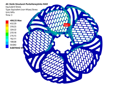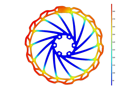 פיזור החום בכל מודל עיצוב שנוצר נבדק באופן מקיף באמצעות תוכנת סימולציה הנדסית. הקשרים בין ההעברה, הקרנה, שטח פנים ומשקל שימשו לקביעת העיצוב האופטימלי במטרה למקסם את פיזור חום ועמידות הדיסק תוך שמירה על מזעור משקל. מבנה כל עיצוב הוערך תחת כוחות בלימה הנעים מלחץ יד טיפוסי ועד למקסימום תיאורטי. נקודות לחץ קריטיות במבנה זוהו על מנת למקסם את חוזק וקשיחות הדיסק.