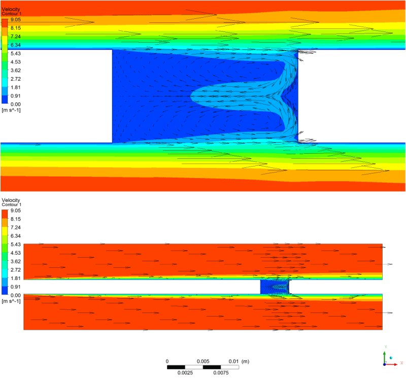 בוצעו סימולציות של דינמיקת נוזלים חישובית (CFD) כדי לחקור את זרימת האוויר מעל פני הדיסק ובאזורי החיתוכים. נבדקו פרופילים שונים כדי לקבוע את השפעת החורים האסימטריים ולמקסם את אפקט הקירור של זרימת האוויר על פני השטח.